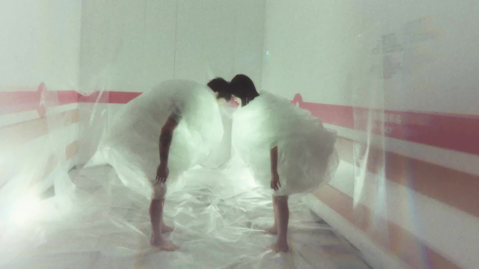 制作助理向我提议拍摄工作室对面大厦的升降机。有天我过去看了一下,立刻觉得很合适。那台升降机很宽,却又很矮,有种怪异感,特别适合那段群舞。另外,天花板的灯也是我们选择以这台升降机作拍摄场地的有力原因,它的形态有种电影感,也是很好的光源,正好弥补了用远镜拍摄群舞没办法打灯的问题。当然,我们也有美术上做了一些“手脚”,因为原本的灯太宽、灯光也太白;我们做了一个灯罩罩着它,再围了黑边,让它更符合美术上的需要。