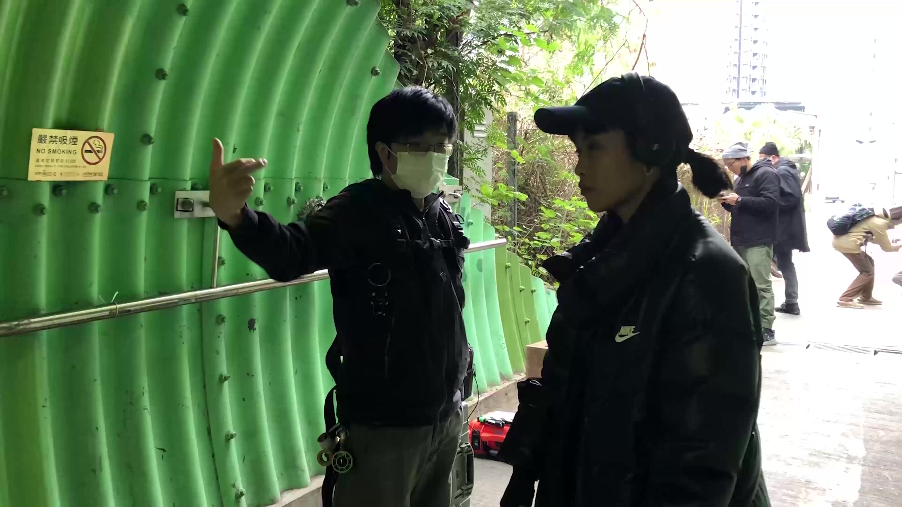 可是,当我去到现场,才发现升降机的外墙是用水泥包起来的,说的就是在梁凯凌《合如是》中出现的升降机。如你所见,真正看到玻璃的部分很少,也就是说,无论我从内或外拍摄,升降机都不通透。这个难题在勘景过程中不断出现。